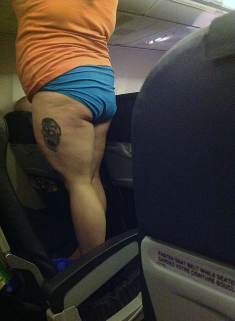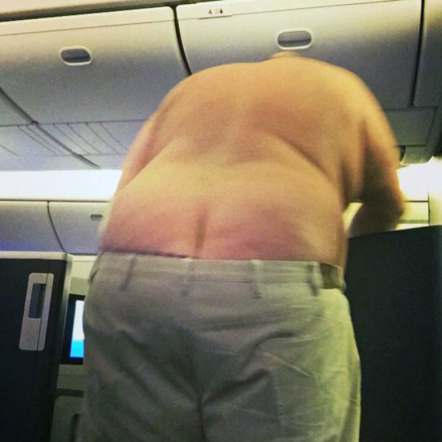Una de las ventajas de volar en primera clase en un vuelo internacional, es que algunas aerolíneas proporcionan esponjosos pijamas a sus pasajeros. La cortesía común espera que seas discreto y que acudas al cuarto de baño para lavarte y cambiarte rápidamente. Sin embargo, todavía es posible encontrarse a alguien cambiándose en mitad del pasillo del avión.