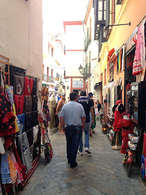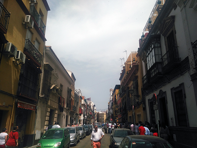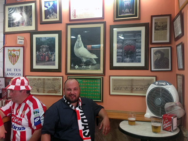 venga va, pon caña aqui, mi arma, pim pam, 2 horitas guapas con aire acondicionao. termina el partido y a la calle, el barrio de Triana, esta lleno de bares y es un paseo largo a la vera del Guadalquivir, precioso, con todo el mundo sentado en frente, pero lo raro es que no consumian. al final de este paseo