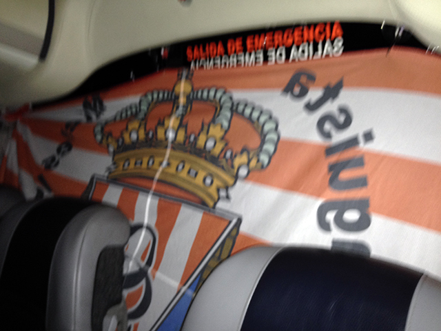 el tema, salimos, viernes noche en Bus desde mieres con la peña Mieres del camino. como es logico, ya un poco encharcaos a sidra. cosa que trajo a posteriori consecuencias. Antes de na, colocar la bandera la peña en el bus.